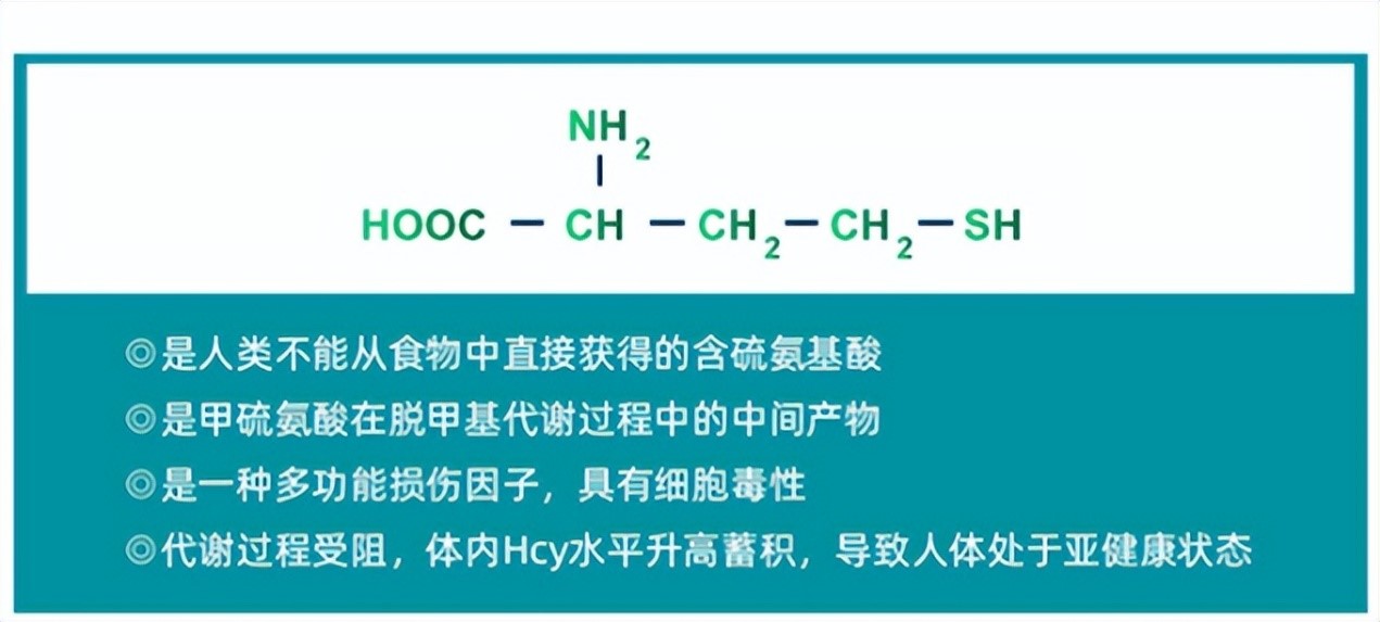 但在日常生活中由于原发性原因和继发性原因会影响血同型半胱氨酸代谢导致同型半胱氨酸浓度堆积升高,简称高血同,会大幅增加冠心病、外周血管疾病及脑血管疾病的发病风险。