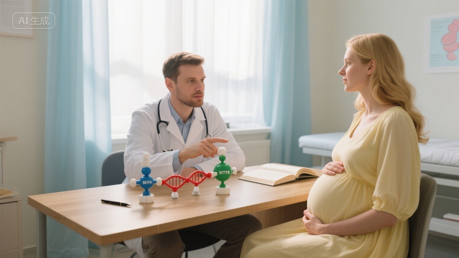 很多多囊卵巢综合征(PCOS)女生都有这样的体会——胰岛素抵抗像个隐形的包袱,不光打乱激素平衡,还可能让日后的 2 型糖尿病风险悄悄升高。近年有研究发现,一个叫 MTHFR 的叶酸代谢基因,恰好卡在这条风险链的节点上。该基因负责调控叶酸在体内的转化过程,一旦发生常见变异,叶酸代谢途径将受阻。想象一下,原料堆在门口,搬运工力气不够,货就送不进去,时间久了还可能堆成没用的库存。该多态性可分为三种基因型:CC型酶活性正常,CT型酶活性降低,TT型酶活性显著下降。当酶活性降低时,叶酸无法有效转化为身体可利用的形式,导致部分叶酸滞留于血液中,形成未代谢叶酸并逐渐蓄积。