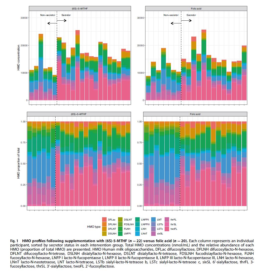 [2] Titaley CR, et al. Human milk oligosaccharide composition following supplementation with folic acid vs (6S)-5-methyltetrahydrofolic acid during pregnancy and mediation by human milk folate forms.Eur J Clin Nutr. 2024; DOI:10.1038/s41430-024-01476-x.