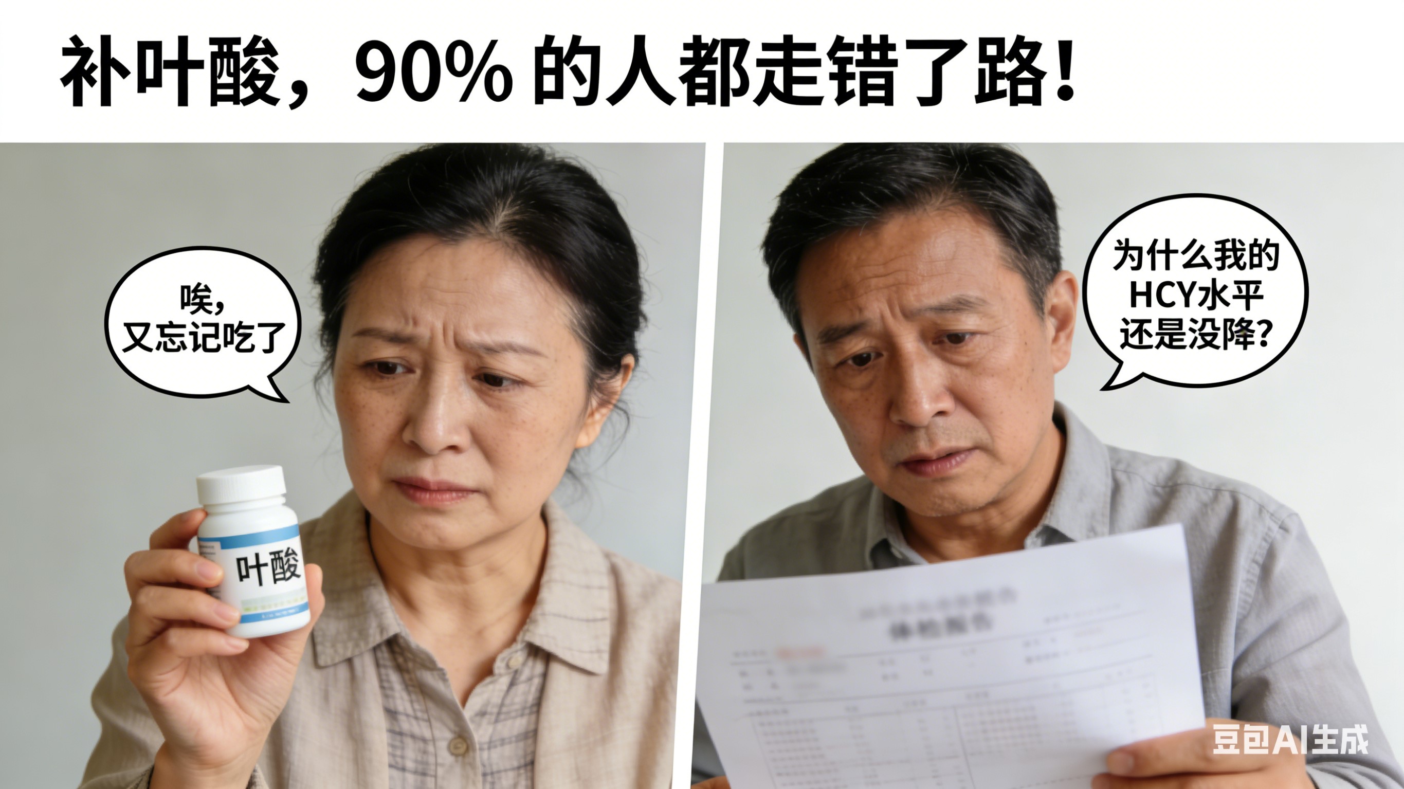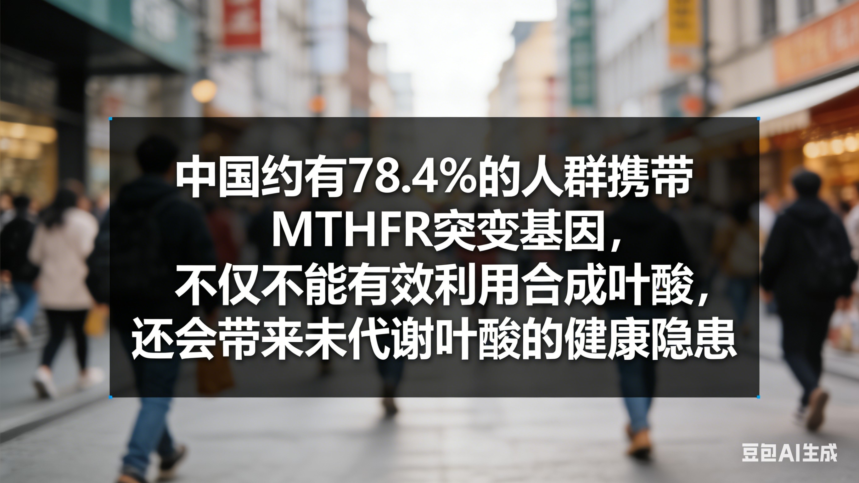 2. 绕不开国民代谢基因壁垒:即便天天按时服用,78.4% 的国人仍受限于 MTHFR 基因缺陷,肝脏无法将合成叶酸转化为身体可利用的活性形态,大部分未被利用的叶酸蓄积在体内形成未代谢叶酸 —— 这也是很多人 “吃了半年叶酸,HCY 毫无变化” 的主要原因。