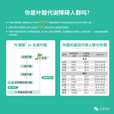 为什么要补充活性叶酸?合成叶酸不香吗?不实惠吗?补活性叶酸,是体质决定的。中国人由于遗传的关系,叶酸代谢基因MTHFR突变率高达70%,关键酶活性普遍偏低,导致摄入的合成叶酸不能很好地转化为5-甲基四氢叶酸,没能转化的、未代谢的合成叶酸(UMFA)在体内蓄积,增加孕妇及乳母妊娠期疾病风险,引起新生儿过敏性疾病,增加新生儿罹患唐氏综合征、先心病、自闭症等疾病的风险。补充合成叶酸,就是以身试险,UMFA就像一个不定时炸弹,总在猝不及防的时候引爆。