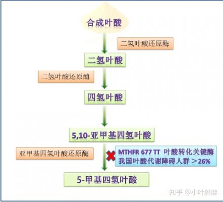 不同于天然叶酸的直接吸收利用,合成叶酸宛如一个半成品,在体内要经过几道复杂的工序转换,少不了需要借助体内酶活性,最后一站的产物5-甲基四氢叶酸才是人体真正所需。