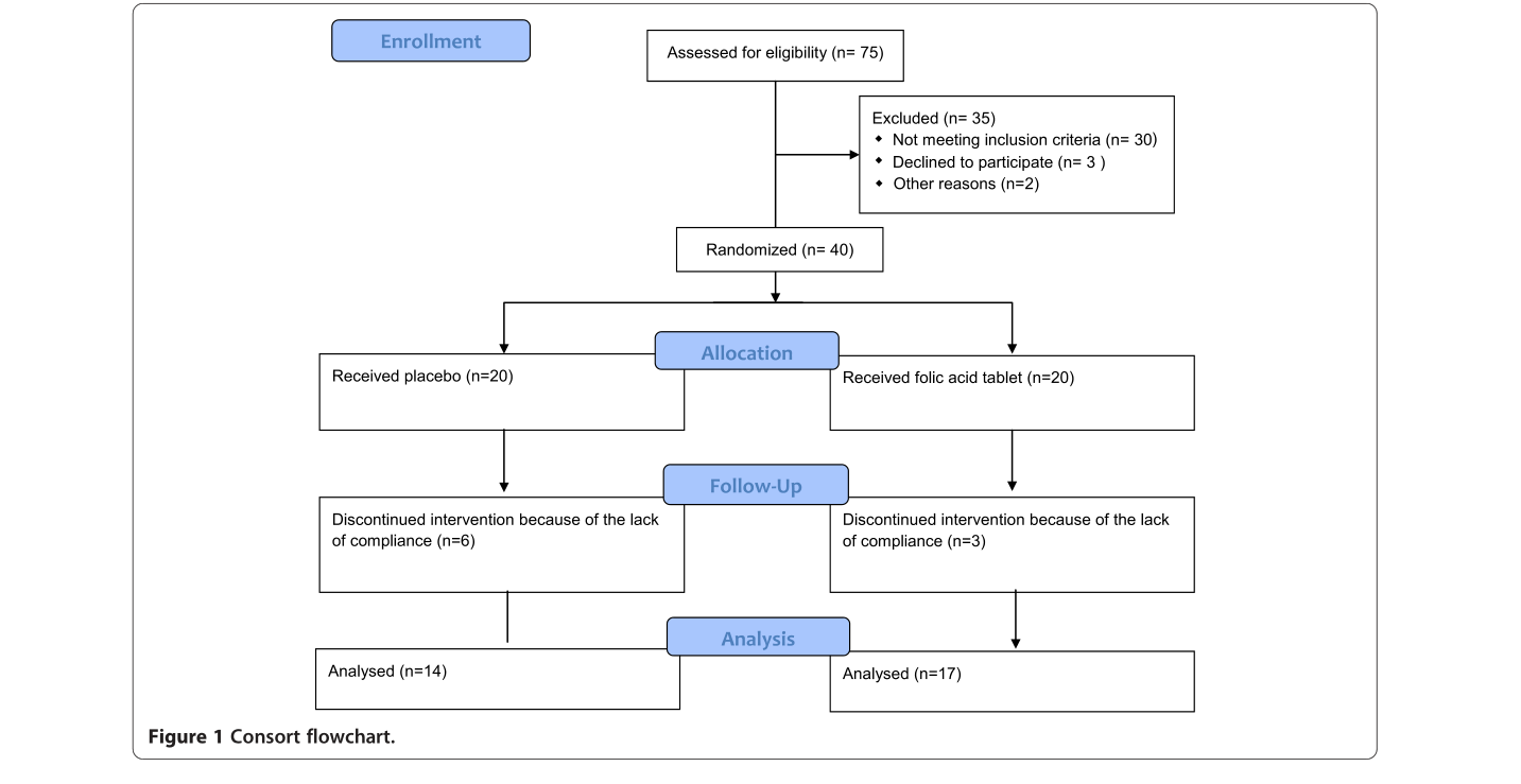 2014年伊朗一个研究团队做了一件事挺有意思。他们在《DARU Journal of Pharmaceutical Sciences》(当时IF 4.088)上发了一篇随机双盲试验,专门看叶酸对绝经后骨质疏松女性的影响。40个人入组,叶酸组17人,安慰剂组14人(部分中途退出),跟踪了6个月。